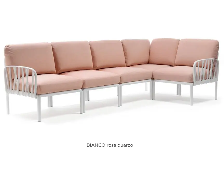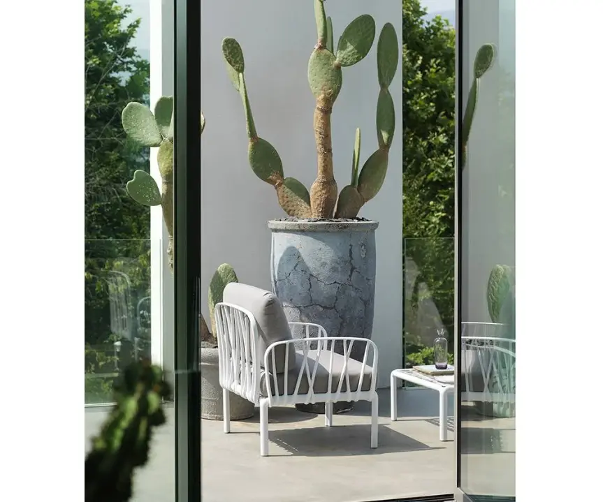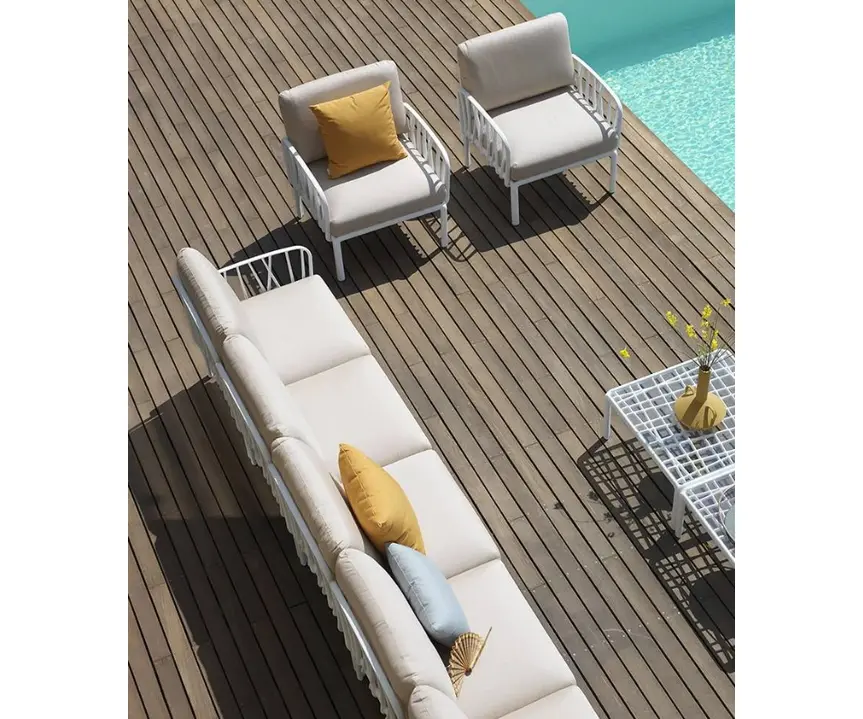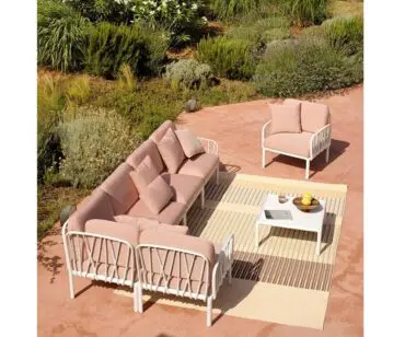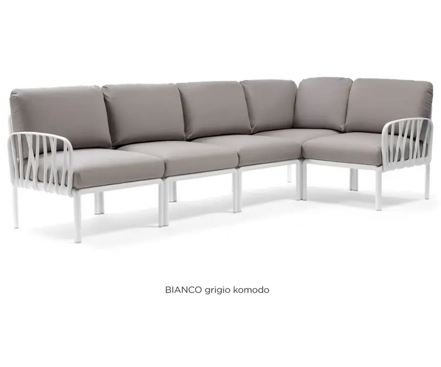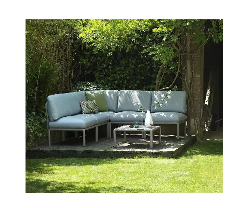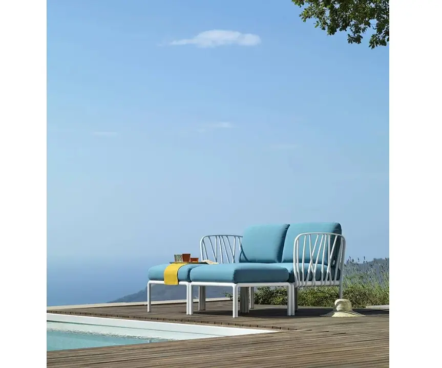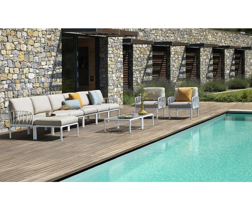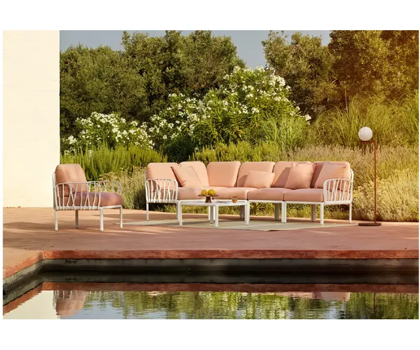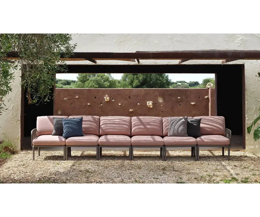El sofá Komodo de Nardi Outdoor es un sistema modular de asientos diseñado por Raffaello Galiotto que redefine la flexibilidad en el mobiliario de exterior. Su diseño está inspirado en el entramado de las ramas de los árboles, lo que le otorga una estética orgánica y ligera que se integra de forma natural en jardines y terrazas.