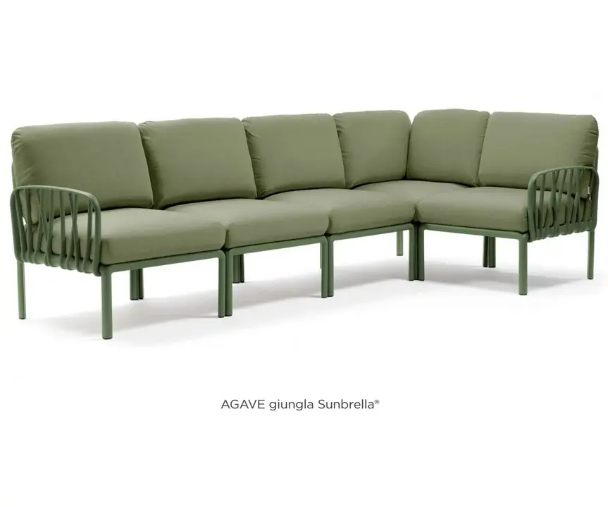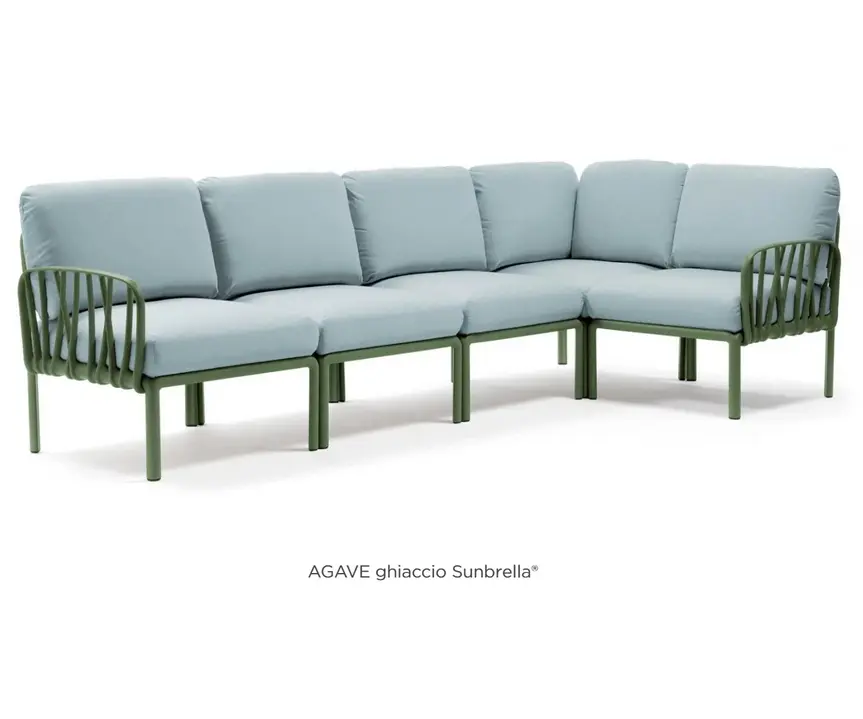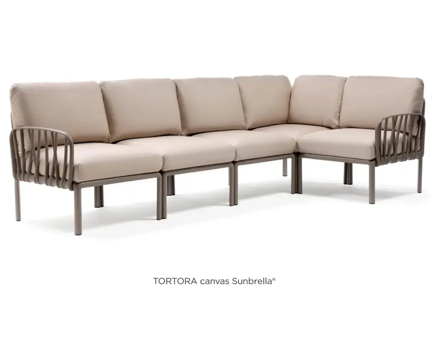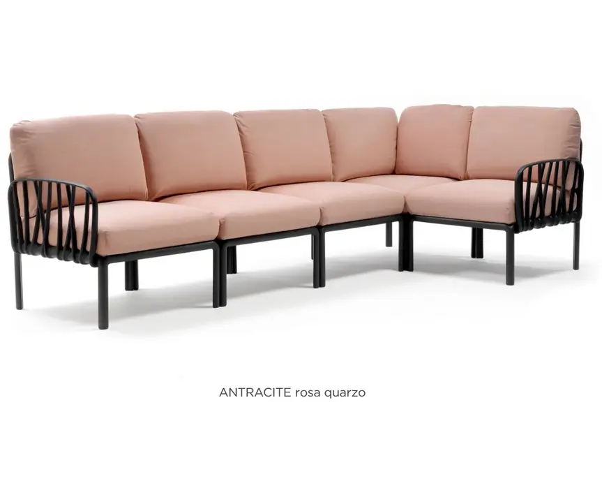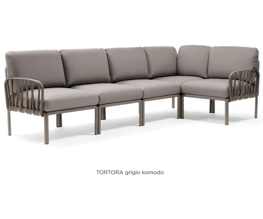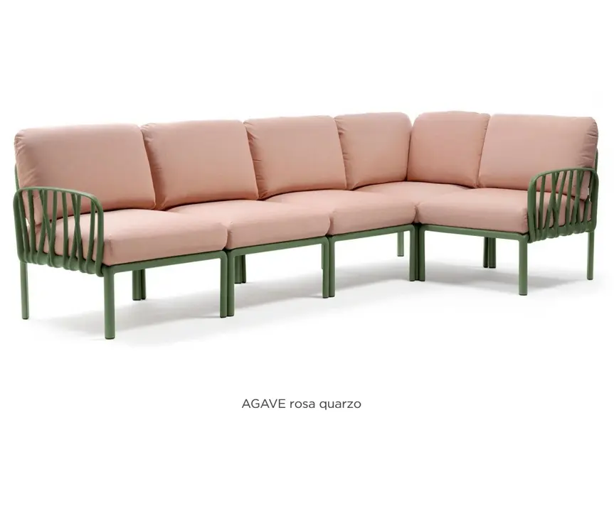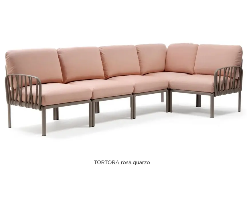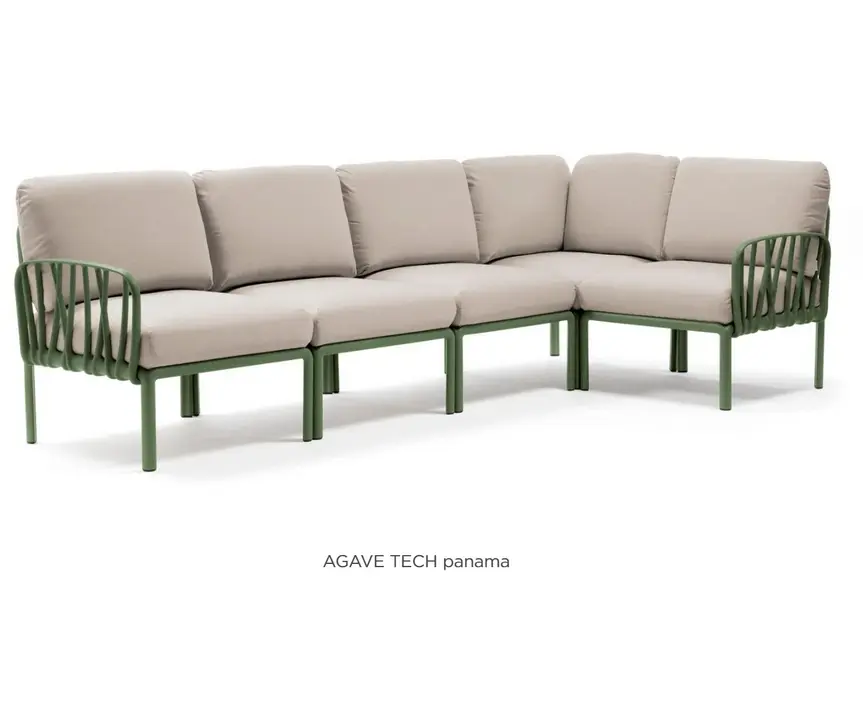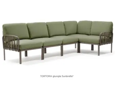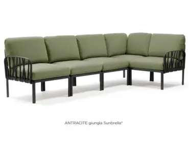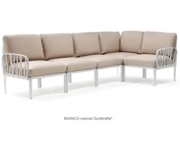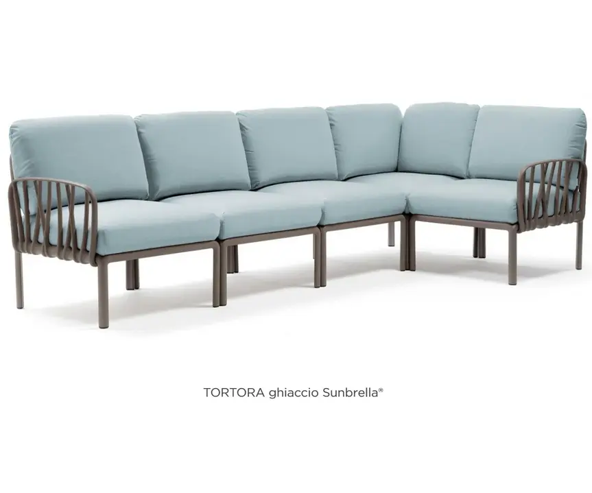 El sofá Komodo de Nardi Outdoor es un sistema modular de asientos diseñado por Raffaello Galiotto que redefine la flexibilidad en el mobiliario de exterior. Su diseño está inspirado en el entramado de las ramas de los árboles, lo que le otorga una estética orgánica y ligera que se integra de forma natural en jardines y terrazas.