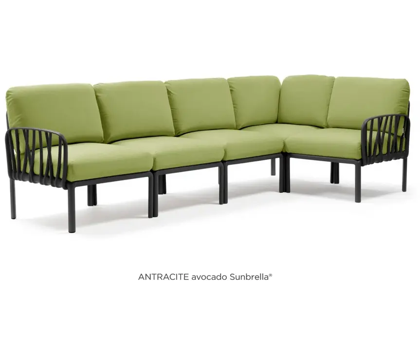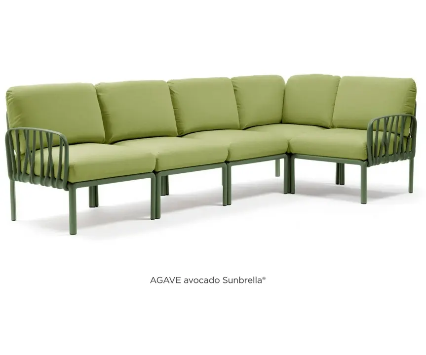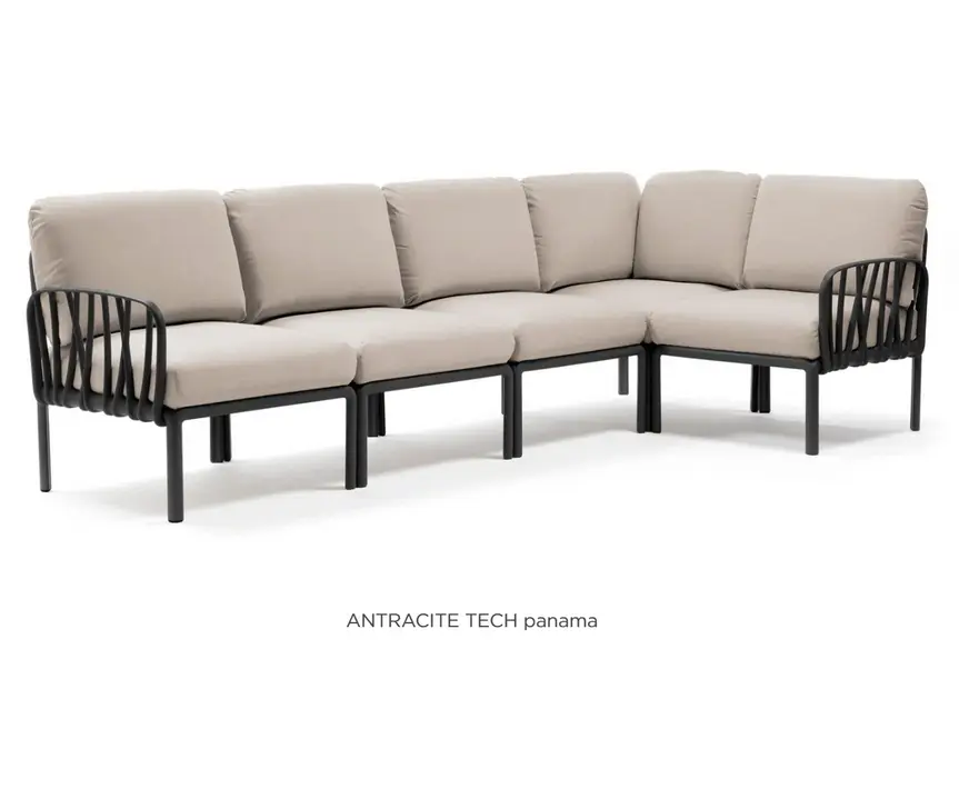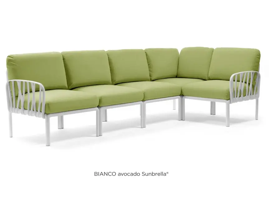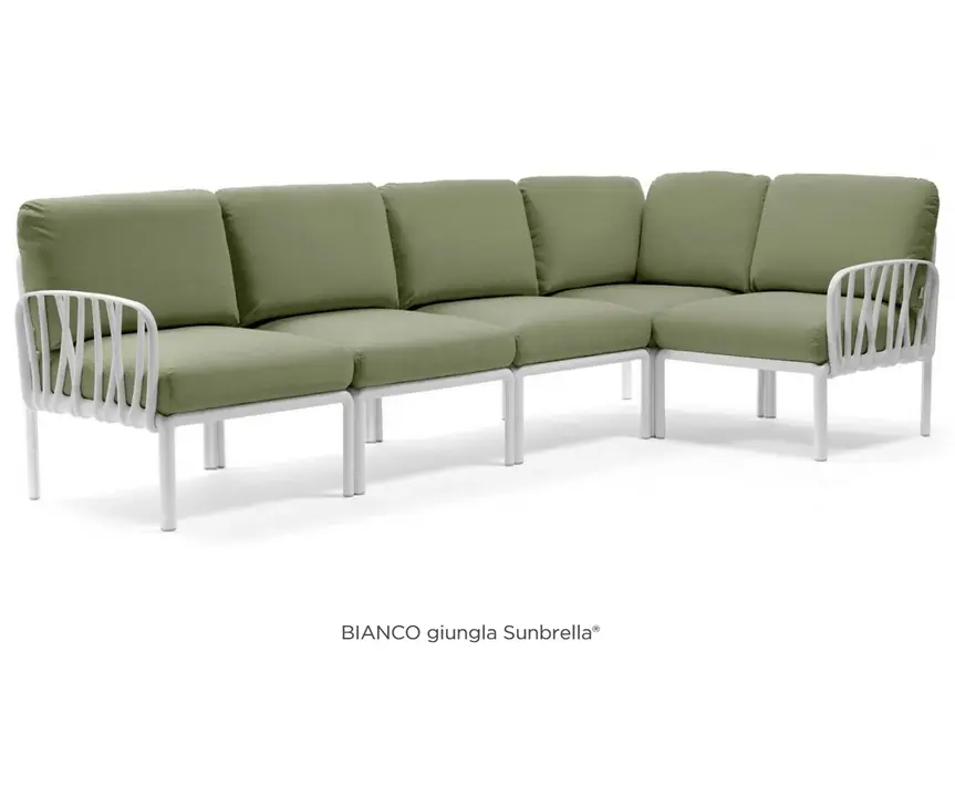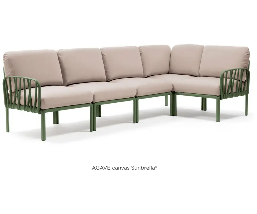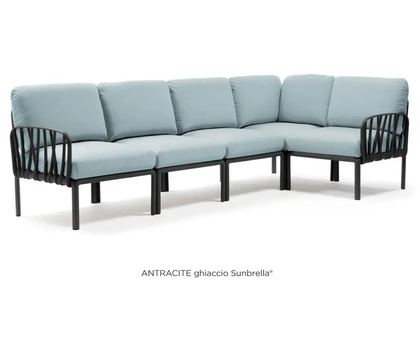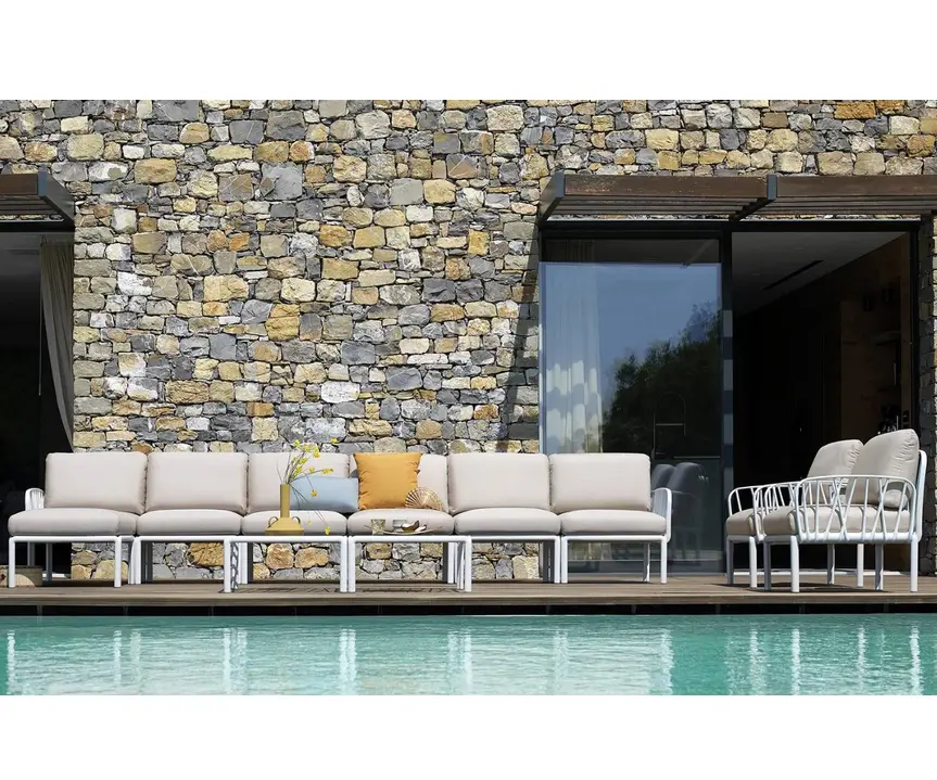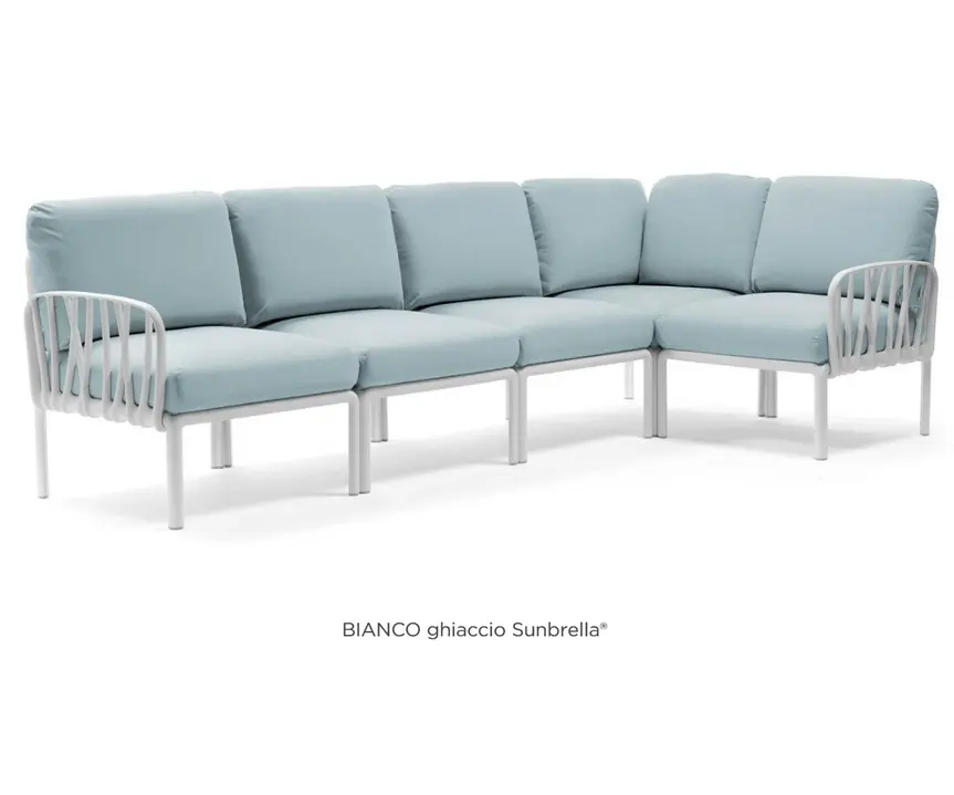 El sofá Komodo de Nardi Outdoor es un sistema modular de asientos diseñado por Raffaello Galiotto que redefine la flexibilidad en el mobiliario de exterior. Su diseño está inspirado en el entramado de las ramas de los árboles, lo que le otorga una estética orgánica y ligera que se integra de forma natural en jardines y terrazas.