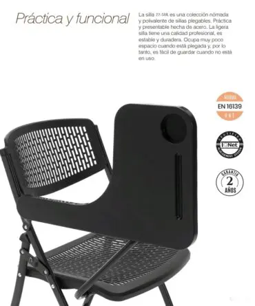 – Sistema de unión: De serie, incorpora un sistema de unión lateral para unir sillas, de forma que se puedan fijar entre ellas.