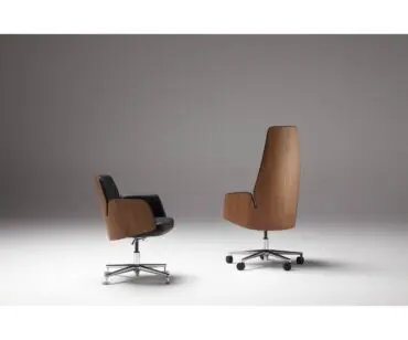 De usos corporativos y de trabajo, existe en tres alturas de respaldo distintas, tapizado en piel o tela, propuestas en una amplia gama de colores con el respaldo chapado en madera natural.