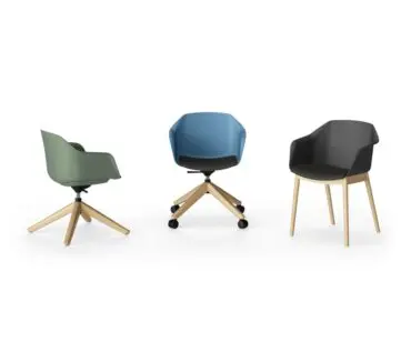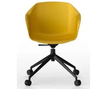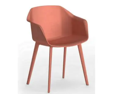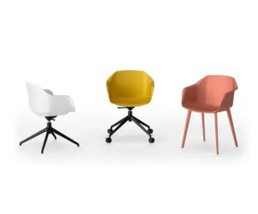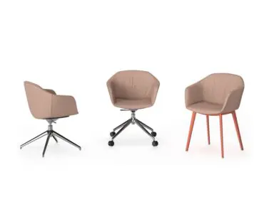 Helmet ofrece infinitas posibilidades de personalización gracias a la combinación de acabados en su carcasa de polipropileno, disponible en las versiones de sillón fijo o giratorio para mayor comodidad y funcionalidad, se combina con todas las bases de la colección: cuatro patas, patas de madera o inyección, (con y sin ruedas).