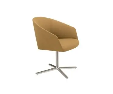 Sillón Brandy de Andreu World base central, diseñada por Lievore Altherr Molina. Elegancia y comodidad son algunas de las características de esta colección de sillas gracias a su estructura envolvente. Base central giratoria de aluminio pulido, blanco o negro disponible con 4 aspas con sistema retorno o con 5 ruedas, regulable en altura (hasta 12cm).