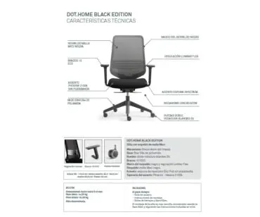 Mecanismo sincronizado autopesante para un ajuste amplio pero sencillo. elevación a gas del asiento, regulación vertical de los brazos, apoyo lumbar flexible y regulable en altura. En Dot home además resalta su elasticidad mecánica del respaldo, que permite pivotar la zona superior, así como su tejido técnico que permite una alta transpirabilidad.
