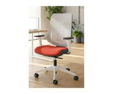 Es una silla muy personalizable de muy alta calidad y de muy cómoda y duradera. La malla, en este caso, siempre es de color blanco grisáceo, el marco de todo el respaldo es de color blanco. La platablanda (el tapizado que rodea el grosor del asiento) también es siempre es del color blanco grisáceo al igual que el respaldo. El asiento tapizado está disponible en varios colores a elegir del muestrario. Como opción puedes escoger el trasla, es decir, la regulación en 5 puntos de la profundidad del asiento. Los brazos opcionales son en color blanco fijos o con regulación 3D regulables en alto, ancho y giro de color blanco y con el apoyabrazos en gris claro.