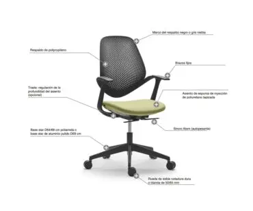 Sus características técnicas la hacen una silla muy completa para que trabajar no sea un problema de ergonomía.