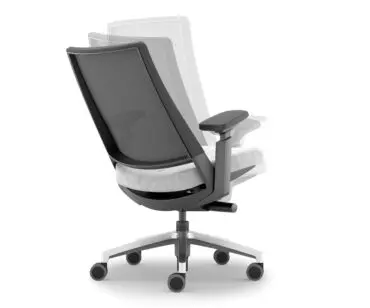 La suma entre el movimiento longitudinal (sincronizado) y el transversal (lateral) dan como resultado una rotación sobre el eje de la silla de 360º que hace que la espalda, el tronco superior y el tronco inferior no encuentren obstaculos para un movimiento natural. Por tanto, la espalda no sufre puntos de presión indeseados y el beneficio ergonómico es patente. Además, este mecanismo incorpora el mecanismo trasla que posibilita la regulación de la profundidad del asiento y permite deslizarlo hasta 10 cm.