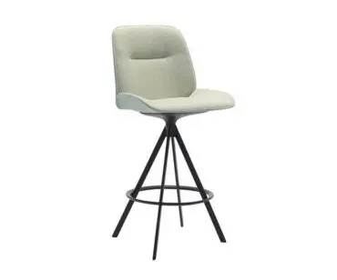 Banqueta Nuez BQ 2769, diseñada por Patricia Urquiola para Andreu World, baja con carcasa de termopolímero y base giratoria de 4 patas de acero y acabado cromo brillo, blanco o negro. Opción de asiento plafonado o asiento y respaldo plafonado.