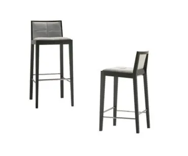 Su tapizado integral de asiento y respaldo tapizado lo hace muy cómodo, perfecto para una sobremesa, su estructura es de madera maciza de haya. Este taburete se puede hacer en dos medidas de altura.