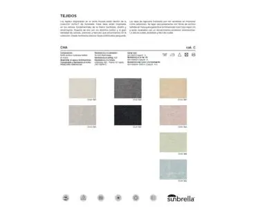 Los tapizados son todos de exterior. de fácil limpieza y mantenimiento, alguno de ellos son de la marca Sunbrella