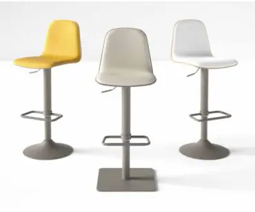 Taburete de gas ajustable en altura de diseño muy actual. El mecanismo de gas, accionado mediante palanca metálica, de calidad europea, garantiza un uso doméstico intensivo. Existen muchas opciones para la base y columna, en acero cromado, lacado al polvo, y de forma acampanada o plana, en acero macizo que aporta una gran estabilidad al taburete. El asiento, que puede ser lacado o tapizado, tiene una estudiada ergonomía, para usos prolongados. Se ofrece en telas vinílicas con propiedades ignífugas, protección antibacterial, y acabado antimanchas, o textiles, incluidas dos colecciones con tecnología Aqua Clean, que permite limpiar cualquier tipo de mancha solamente con agua.