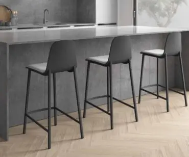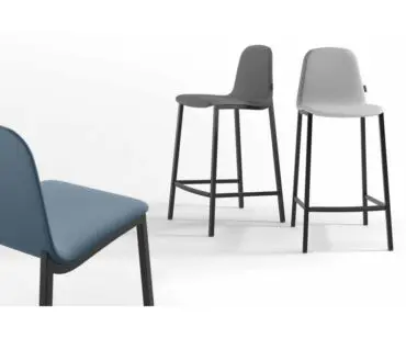 Taburete de bar de diseño con estructura de metal. Se fabrica con tubo de acero de 20mm, resistente para uso intensivo en el hogar o en espacios colectivos como bares o restaurantes. La curvatura trasera en el tubo metálico aporta un toque de distinción en su diseño y acompaña la forma ergonómica del asiento, diseñado para obtener una máxima comodidad de uso. El asiento puede fabricarse en madera contrachapada teñida o lacada o tapizado. La gama de telas es muy amplia, tanto en vinílicos con propiedades ignífugas, protección antibacteriana, y acabado antimanchas como en textiles, incluidas dos gamas con tecnología AquaClean, que permite limpiar todo tipo de manchas solo con agua. Las patas incorporan tapones de polietileno con fieltro integrado, que reducen el ruido en contacto con el suelo y evitan el desgaste con el paso del tiempo.