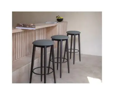 El taburete Oto con una base redonda que construye un buen asiento en cualquiera de sus alturas.