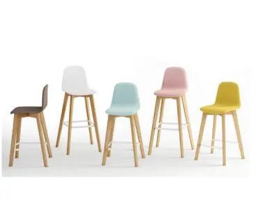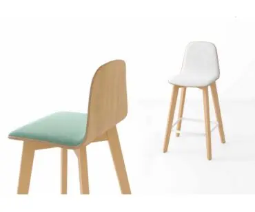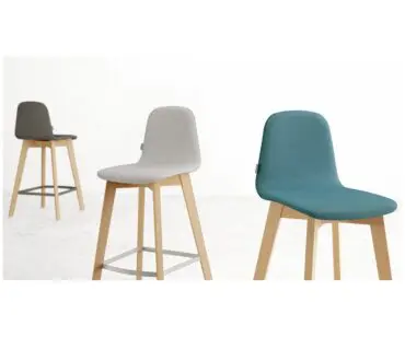 Taburete Dolce de Cancio, perfecto para cocina y contract con patas de madera de haya y asiento monocasco tapizado, lacado o mixto