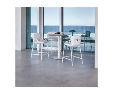El taburete está diseñado para uso en exterior, aunque también es válido para usar en un comedor. Elegante diseño y comodidad. Fabricado por Musola linea de exterior de Mobliberica.