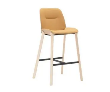 Banqueta Nuez BQ 2763, diseñada por Patricia Urquiola para Andreu World, banqueta baja con carcasa de termopolímero y base de 4 patas de madera maciza de fresno. Opción de asiento plafonado o asiento y respaldo plafonado.