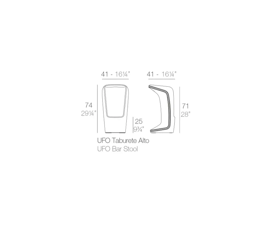 Taburete Ufo Vondom, diseño Ora Ïto. Fabricado con resina de polietileno mediante moldeo rotacional con doble pared. 100% Reciclable. Apto para exterior e interior. Disponible en varios acabados. La colección es el resultado de “experimentos de mutación genética” entre los lenguajes icónicos de pagodas y ovnis. Se caracteriza por la oposición de formas negativas y positivas. Este enfoque creativo dio a luz a una línea inspirada en el monolito Marta Pan, fluida y escultural que invita a la relajación y comodidad. Su butaca, mesa y sofá permiten crear distintas composiciones altamente adaptables a espacios de exterior gracias a su forma elegante y material resistente a la intemperie y adversidades. Los colores, posibilidad de acabados e iluminación interior amplía las posibilidades de transformación de ambientes.