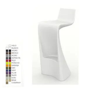 Taburete Wing Vondom, diseño de A-cero. Taburete fabricado con resina de polietileno mediante moldeo rotacional con doble pared. 100% Reciclable. Apto para exterior e interior. Disponible en varios acabados.La colección WING de A-cero para VONDOM, nace de los pliegues resultantes de la proyección de líneas rectas y curvas entrelazadas de una manera dinámica. Las curvas y angulaciones extremas que caracterizan la última etapa del estudio a nivel arquitectónico se trasladan también al diseño de mobiliario, apostando por una línea libre, grácil y organicista, que genera movimiento y se abstrae, sinuosamente, de cualquier indicio de una octogonalidad ya superada. Piezas atrevidas que conforman un mobiliario de gran fuerza visual y denotan una notable carga escultórica y dinámica.