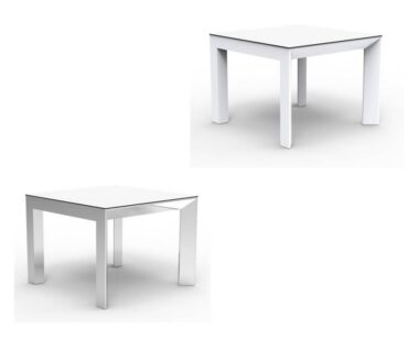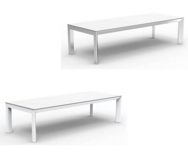 Mesa Frame Vondom Contract, diseño Ramón Esteve. Mesa de estructura de aluminio, disponible en blanco o plata. Tablero de compacto blanco. Sigue la línea de toda la familia Frame. Tres medidas disponibles.