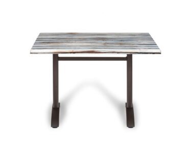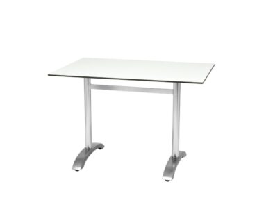 Mesa perfecta para hostelería, fabricada en aluminio con patas en los extremos. Estructura disponible en pulido o pintada en cualquier gama ral. El aluminio le otorga propiedades como la resistencia a la corrosión y ligereza. Uso exterior-interior.