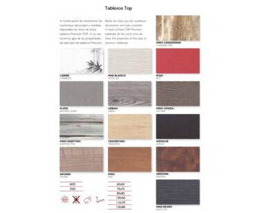 Precio indicado para un pedido igual o superior a 10 unidades, en acabado de tapa Top, con patas y estructura en grafito, oxido marrón, deco-inox o blanco texturizado, en medida 100×60