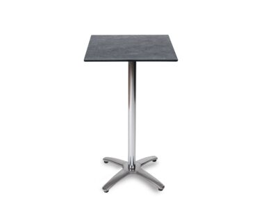 Mesa Tur de 4 pies, con pie central fabricado en aluminio que le otorga menor masa y la hace más ligera. Posibilidad de pedir la estructura pulida, columna con médula o pintada. Diferentes tableros disponibles, top, compacto, compacto texturizado, acero inox o melamina (uso interior), dependiendo del espacio y de los comensales. Dependiendo del tamaño del tablero nos podemos encontrar de tres y cuatro patas o laterales para los rectangulares. Mesa que permite dos alturas estándar y de 110cm.