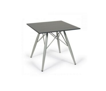 Mesa baja de hostelería 25-360 X-4. Original mesa de interior realizada con estructura de aluminio pintado en gris o blanco.Tapa de melamina, acabado solo, compact, melamina gama studio, disponible en varias medidas y formas, tanto redonda como cuadrada.
