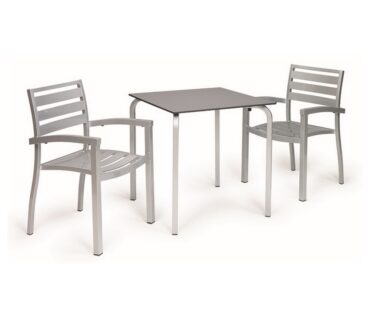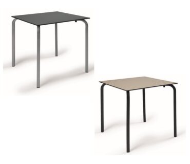 Mesa hostelería 25-8177, con estructura de aluminio de tubo cuadrado 30x30mm. Disponible en color gris, negro, grafito y blanco. Dos tipos de tapas disponibles compacto o wersalit, ambos en varios acabados e elegir.