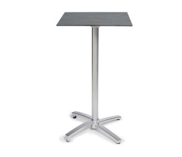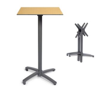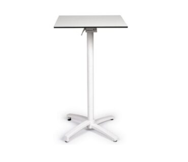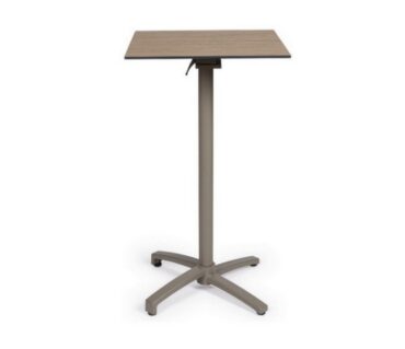 Mesa 25-9147 realizada en dos versiones, estructura de aluminio pintado en negro, blanco, gris o grafito, sólo 4 pies válida para exterior. Con base de cuatro apoyos. Se oferta en gran variedad de tableros en 60×60, Ø60 y Ø70cm, en Werzalit como en Compacto. Opción de abatible, para plegar la tapa cuando no la estemos usando y aprovechar mejor los espacios.
