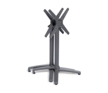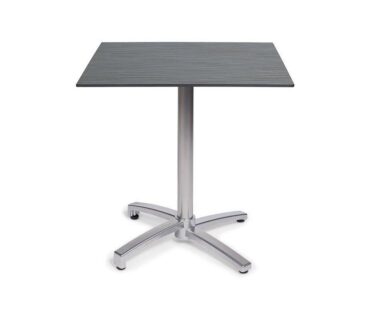 Mesa 25-9466 realizada con estructura de aluminio pintado en gris o grafito; válida para exterior. Tablero abatible. Cuatro apoyos. Se oferta en gran cantidad de tableros en 60×60, 70×70, 80×80. Los tableros los hay tanto en Werzalit como en compacto, en varios acabados disponibles.