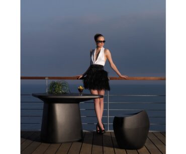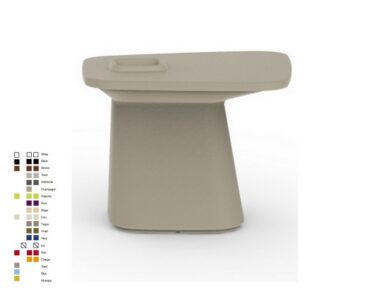 Mesa Moma Vondom Contract, diseño Javier Mariscal. Fabricado con resina de polietileno mediante moldeo rotacional con doble pared. 100% Reciclable. Apto para exterior e interior. Disponible en varios acabados. La colección MOMA, diseñada por Javier Mariscal para la firma VONDOM; es una serie de objetos para el exterior. Se decidió hacer una nueva tipología de mobiliario a partir de unir las funciones de un macetero y una mesa de exterior, así nació MOMA, una colección que se caracteriza por su versatilidad y originalidad. A partir de la pregunta ¿cómo nos sentamos? surgieron tres versiones que podían adaptarse a tres ambientes distintos: una para chill-out, Low, completado con un puf de gran confort de la misma colección, otra para utilizarla sentados en una silla o butaca, Medium, y otra a la que se llega de pie o sentado en un taburete, High, pensando en el placer de tomarse una copa al aire libre. Los primeros bocetos presentaban formas orgánicas que en el desarrollo del proyecto fueron derivando hacia formas más arquitectónicas que recuerdan a una columna con capitel o a una ménsula.