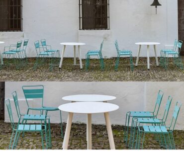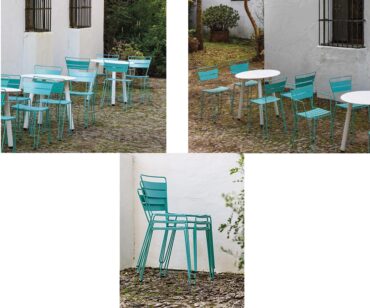 Silla Mallorca de iSiMAR. Conjunto de silla, sillón y taburete (dos alturas: 68 y 76 cm), realizados en acero y lacados con polvo de poliéster. Disponibles en una amplia carta de acabados entre los que podrás elegir el que mejor le vaya a la personalidad de tu negocio. Válidos para exterior. Apilable. Actual y práctica colección ideal para cualquier espacio sea cual sea tu estilo.