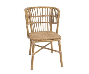 Sillón modelo 25-4093, realizado en armazón de aluminio pintado deco bambú, asiento y respaldo en médula atlas. Válido tanto para exterior como para interior.