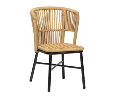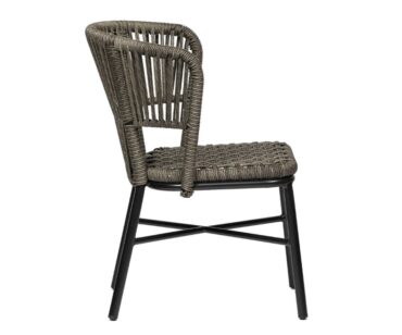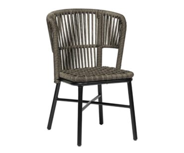 Sillón modelo 25-4093 rope, realizado en armazón de aluminio pintado negro o deco roble, con asiento y respaldo cuerda sintética rope gris o crema. Válido tanto para exterior como para interior.
