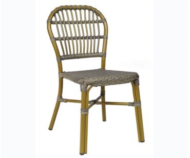 Silla 25-4094, de lineas redondas ideal para ambientes de exterior. Fabricada en estructura de aluminio pintado en deco bambú, asiento en médula volcán.