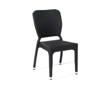 Silla hostelería 25-5071, con médula sintética trenzada a mano y estructura en aluminio. Disponible en médula antracita. Apilable. Válido tanto para interior como para exterior.