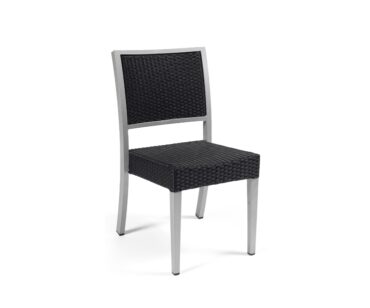 Silla 25-5080 de hostelería. Estructura realizada en aluminio color gris cubierto en asiento y respaldo con médula plastificada reforzada en acabado antracita. Apilable. Válida tanto para interior como para exterior.
