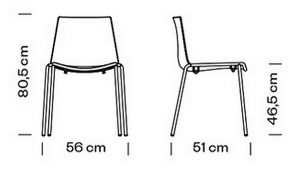 Silla Cuba, con estructura de acero, 4 patas. Carcasa de polipropileno en una amplia gama de colores. Ligera, funcional y práctica. Perfecta para terraza y jardín por su diseño fino, elegante y alegre.