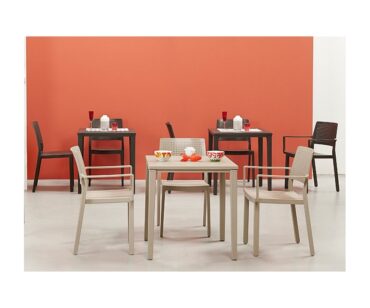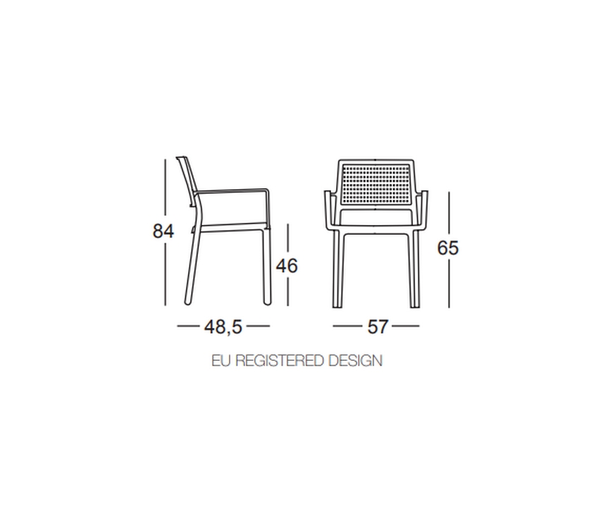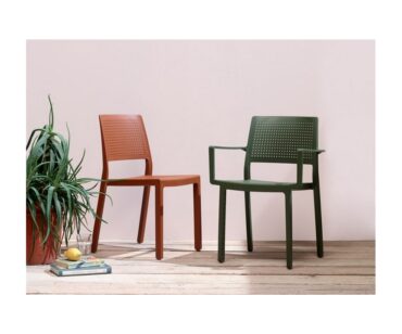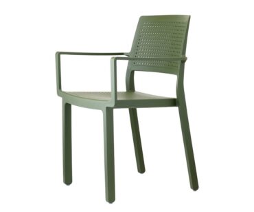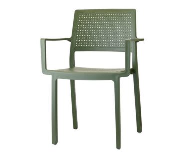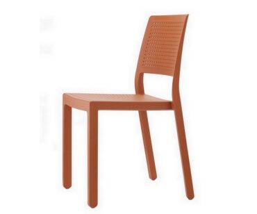 Silla para hostelería 58 Emi, con un aspecto discreto, con unas líneas limpias y de gran comodidad, el marco está hecho completamente en tecnopolímero, mientras que las perforaciones hacen que la silla o el sillón Emi sean ideales para espacios al aire libre, o en casa como para uso diario. La forma especial de las patas, creada en un solo bloque, significa que se apila perfectamente, sin dejar espacios, y es muy estable. Disponible en versión con o sin reposabrazos y en una gran variedad de colores.