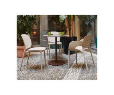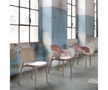 La silla Hug es una nueva línea de asientos que para realizarla, de hecho, se eligió el tecnopolímero, pero reinterpretado en clave contemporánea con la voluntad de ser cada vez más sostenibles en nombre de las buenas prácticas concretas a favor del medio ambiente. Por lo tanto, para HUG se elige un material certificado regenerado postconsumo industrial PCR. Silla y sillón alcanzan un nivel superior de calidad y ética, dando vida a una colección creativamente ecológica adecuada tanto para el uso en interiores como en exteriores. Para HUG se pensó un elemento muy característico: entre el asiento y el respaldo, de formas redondeadas y equilibradas, los diseñadores introdujeron un elemento de banda, definido por un motivo de rayas en relieve que envuelve como un abrazo.