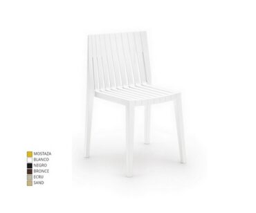 Silla Spritz Vondom Contract, diseño Archirivolto. Fabricada en polipropileno por inyección y reforzado con fibra de vidrio. Apilable. Disponible en varios colores. Apto para uso interior y exterior. Las cercas de madera blancas que bordean la playa, las pequeñas tiras que se suceden, en su geometría perfecta. Esa es la imagen que inspiró la colección Spritz, que se compone de los detalles robados de esta idea. Silla, sillón, taburete y mesa alta; perfecto para cada necesidad, la colección Spritz se adapta bien a cualquier contexto. Contract y hogar. No es una coincidencia que Spritz, la colección creada por Archirivolto para Vondom, encarne en el nombre de la idea de frescura y pureza de formas. Es una mezcla entre la linealidad de estilo nórdico y la calidez mediterránea, que crean un diálogo entre interior y exterior. La colección se completa con sillón, taburete en dos alturas y mesa.