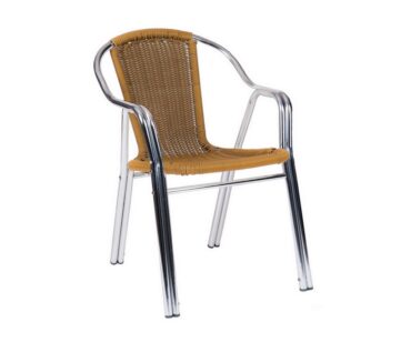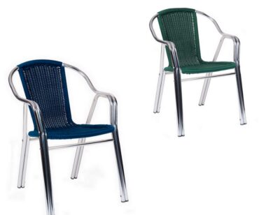 Sillón para hostelería 24 Eur, fabricado en aluminio pulido con asiento y respaldo trenzado creando comodidad para el cliente. Gracias a su doble pata cilindrica ayuda a crear una estructura mas resistente.Silla perfecta para uso exterior, apilable, ligera y con variedad de colores. Un clásico que nunca falla en cualquier terraza.