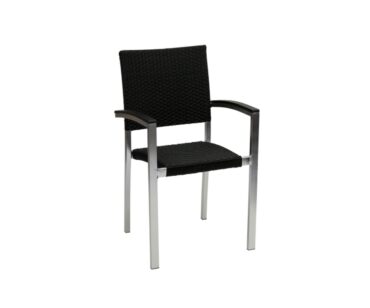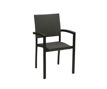 Sillón para hostelería 24 Gla, apilable fabricado en aluminio (colores grafito,óxido marrón, blanco texturizado o terminación deco-inox) con asiento y respaldo recubiertos en médula. Reposabrazos resistentes al exterior.