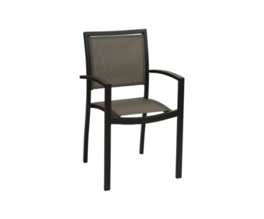Sillón para hostelería 24 Gla, apilable fabricado en aluminio color grafito con asiento y respaldo recubiertos en textiline muy cómoda, disponible en textiline cobre, textiline plata. Posibilidad con incremento de tener los reposabrazos en Teka.