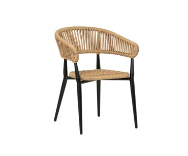 Sillón Hostelería 25-3100, un toque oriental para tú terraza o restaurante, estructura de aluminio pintada deco Roble Natural o negro y con asiento y respaldo en mcuerda gris o crema. Mobiliario preparado para uso exterior. Permite ser apilable, lo que la convierte en un modelo perfecto para espacios pequeños.