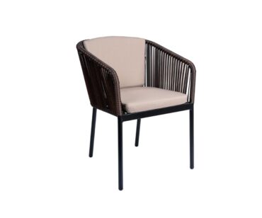 Sillón terraza 25-4023. Magnífico sillón con armazón en aluminio pintado en deco negro (incluye cojín para mayor comodidad) y médula color marrón. Ideal para disfrutar de buenos momentos al aire libre. Sillón apilable para poder aprovechar los espacios pequeños.
