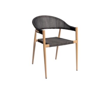 Sillón Hostelería 25-4524 textilene, un toque oriental para tú terraza o restaurante, estructura de aluminio pintada deco Roble Natural con asiento y respaldo en textilene color negro o latte. Mobiliario preparado para uso exterior. No lo dejes escapar y viaja con este modelo que te llevará al lejano Oriente.