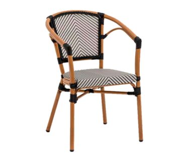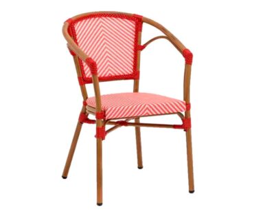 Sillón de hostelería 25-6969, diseñado en estructura de aluminio y con asiento y respaldo en textiline de diferentes colores. Apilable. Apto para uso en interior y exterior.