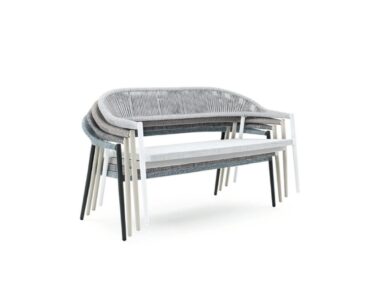 La colección Clever, está compuesta por sillas, sillones, sofá, mecedora, taburete y para que no falte nada de nada en el jardín o terraza tienes también una tumbona que hará que descanses después de un largo día de trabajo. Una familia fabricada en estructura de aluminio con revestimiento en polvo, asiento y respaldo VAR TEX (material a base de PVC). También existe la posibilidad de asiento en textylene y sintético de cuerda vuelta.