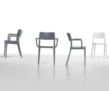 Sillón Nenè apilable, con estructura en polipropileno, adecuado para uso exterior como interior y disponible en distintos colores.